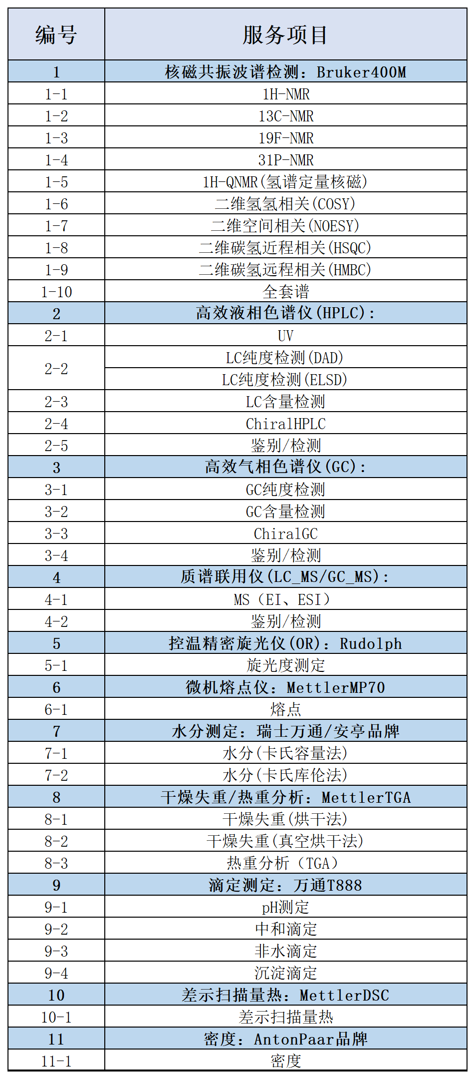 分析检测服务项目
